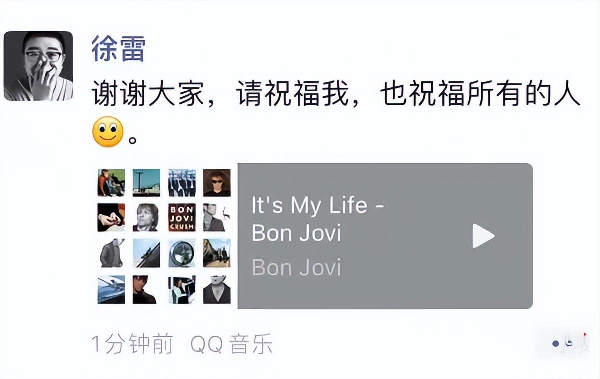 随后晚间,徐雷在朋友圈称:“谢谢大家,请祝福我,也祝福所有的人。”2018年,在升任京东商城轮值CEO当天,徐雷发了一首《Put Your Lights On》,而这次他又用一首《It's My Life》回应了当年的自己。
