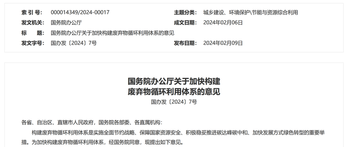 今年3月1日,国务院常务会议审议通过了《推动大规模设备更新和消费品以旧换新行动方案》。循环经济,翻开新的一页。