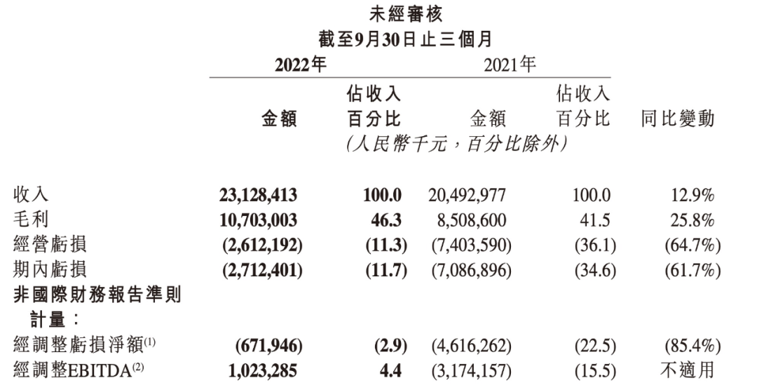 毛利方面,快手Q3的毛利占整体营收的46.3%,为107.03亿元,同比增长25.8%;截至2022年9月30日止的9个月里,累计毛利占整体营收的44.4%,为292.55亿元,同比增长22.5%。