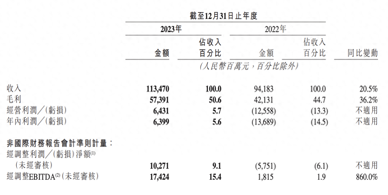 2023年全年,快手的总收入为1134.7亿元,同比增长20.5%;经调整利润净额为102.7亿元,去年同期亏损58亿元。