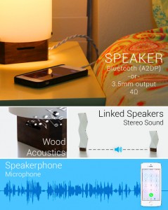 Luma内置高音质蓝牙扬声器与麦克风使使用者无需连接音响就可以播放手机里的音乐,您甚至可以通过它接听电话。此外,它配有木质底座与外放功能完美您的听觉体验,两台luma智能台灯扬声器相连更可以营造立体环绕声。、
