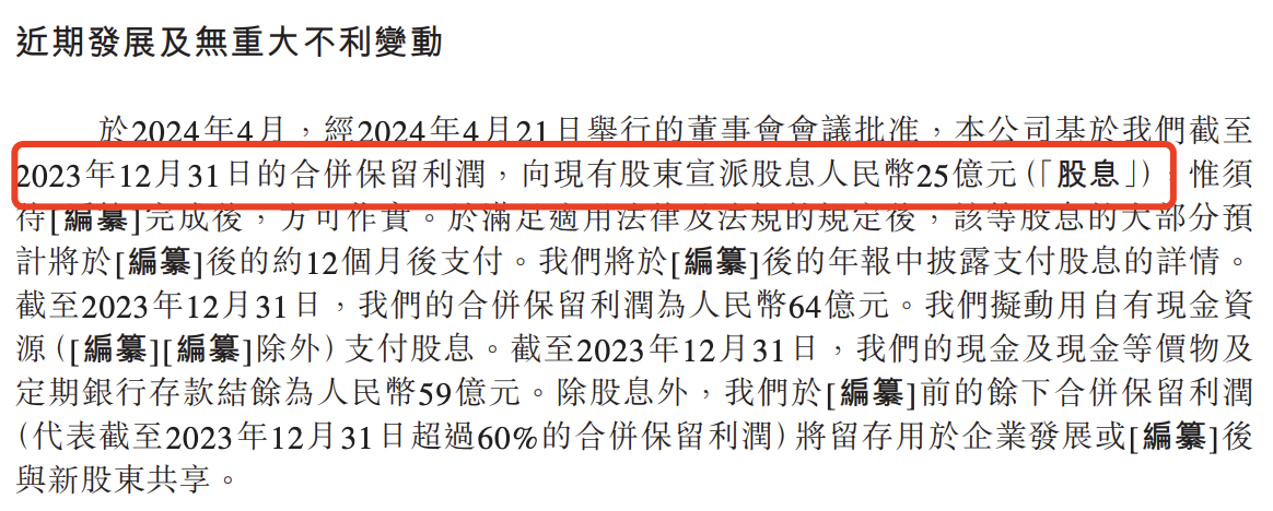 另据贝多财经了解,华润饮料还在提交上市申请前进行了“突击”分红。招股书显示,于2024年4月,经2024年4月21日举行的董事会会议批准,华润饮料拟向现有股东宣派股息25亿元。