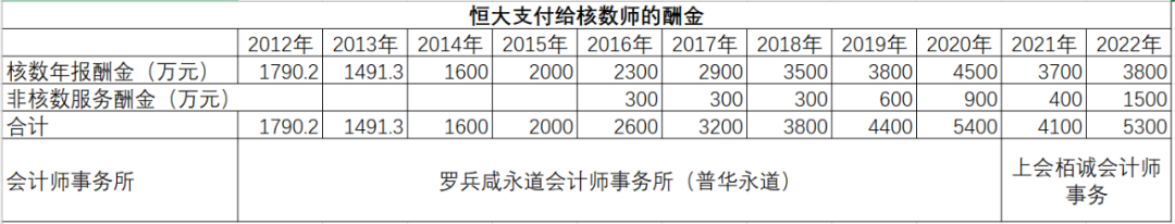 恒大支付给核数师的佣金;镜观台根据公开数据整理