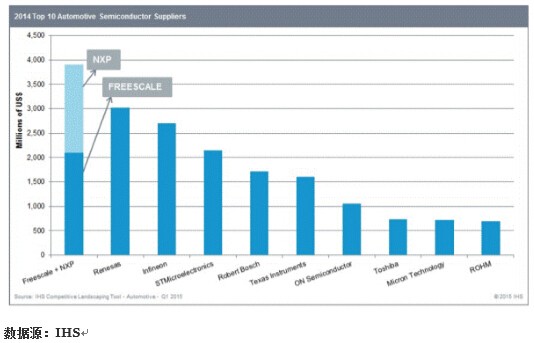 在此趋势下,恩智浦出手并购飞思卡尔,不但能立刻取得在车用半导体市场的领导地位,更能藉此掌握飞思卡尔在嵌入式系统、MCU等领域的专利技术。