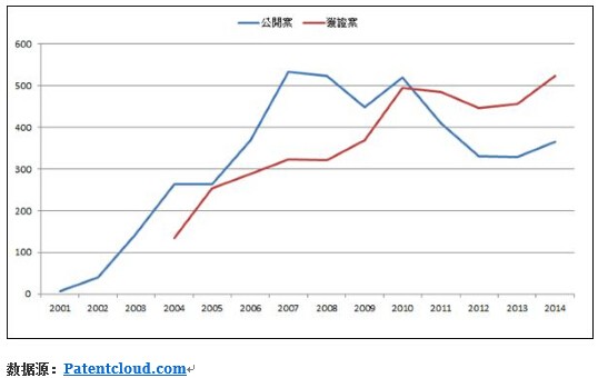 图3:飞思卡尔历年美国专利公开案与获证案统计