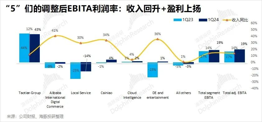 如果说淘天这个大“1”支柱只是底部改善,但还未反转的话,那剩下几个“5”不吃大锅饭之后,似乎都有干劲了:
