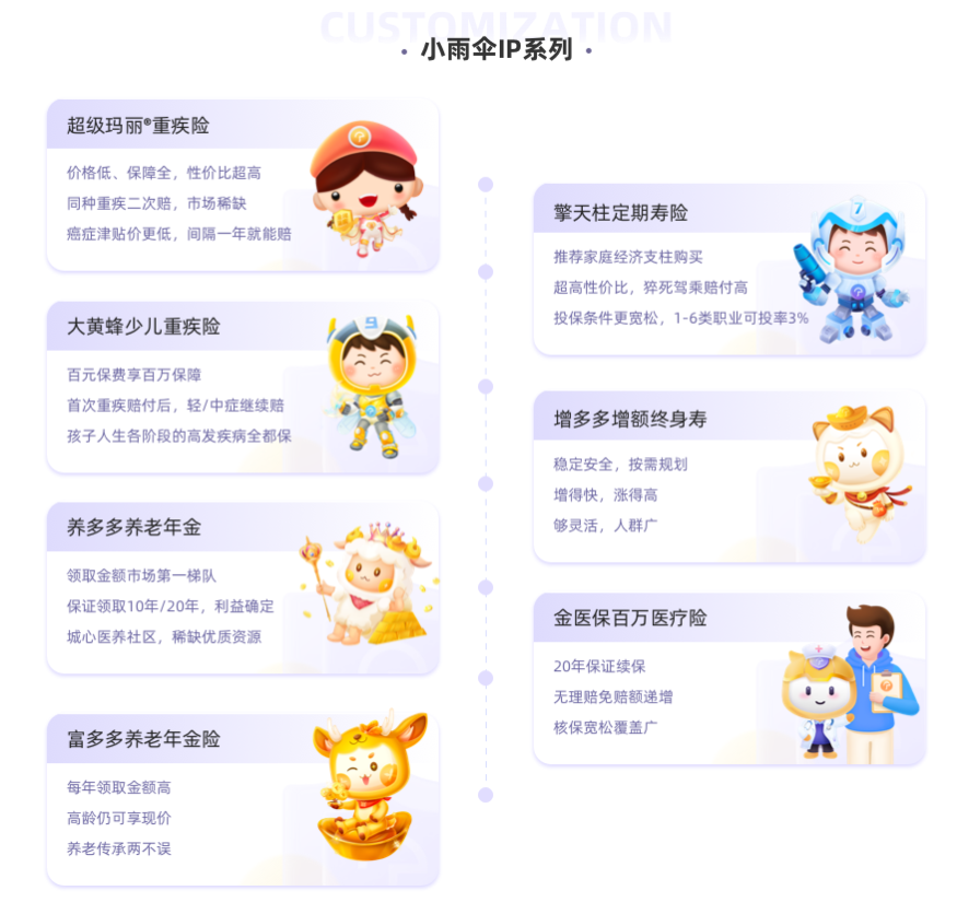 首先,从产品结构看,手回科技的亮点有二:一是以长期人身险产品为主导,二是独家定制产品展示的IP打造能力。
