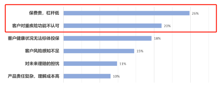 以重疾险为例,国家金融与发展实验室调研了行业内200 名来自各家主要保险公司和经纪公司的精英代理人,调研结果如下图。