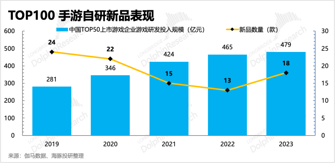 虽然我们说游戏具备相对的抗周期性,但也并不代表人均支出能够持续性的脱离宏观环境逆势走高,一般而言,行业扩张单纯依赖人均付费走高的,往往需要行业整体出现颠覆性的体验,从而使得用户付费意愿发生质变。当行业无法变革,市场规模无法跃迁的时候,厂商们就会开始自发“内卷”:卷建模、卷特效,甚至卷AI NPC。为了在有限的研发预算中满足用户更多的需求和体验,厂商们的在研项目一砍再砍,但研发总投入只增不减。然而,更惨的实际情况是,巨额投入下的明星项目,照样有可能扑得很快,近一点的有《射雕》、《晶核》、《元梦之星》,往前远一点的有《黎明觉醒》、《暗黑破坏神不朽》,都是上线前高预期,上线后槽点满满迅速陨落的热门。