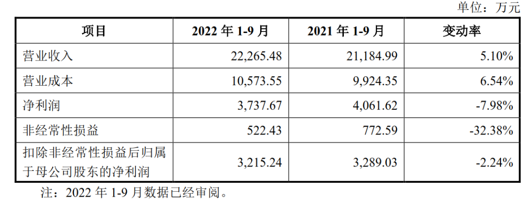 关于期后业绩,托普云农表示,2022年1-9月公司业绩基本稳定,实现营业收入22,265.48万元,较上年同期增长5.10%,实现扣除非经常性损益后归属于母公司股东的净利润3,215.24万元,较上年同期基本持平。