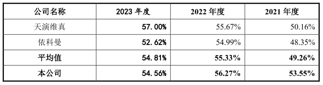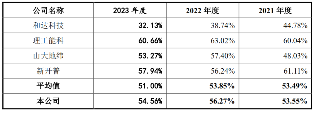 交易所还关注到,报告期内,托普云农综合毛利率分别为56.74%、56.04%、53.55%、53.90%,保持较高水平。