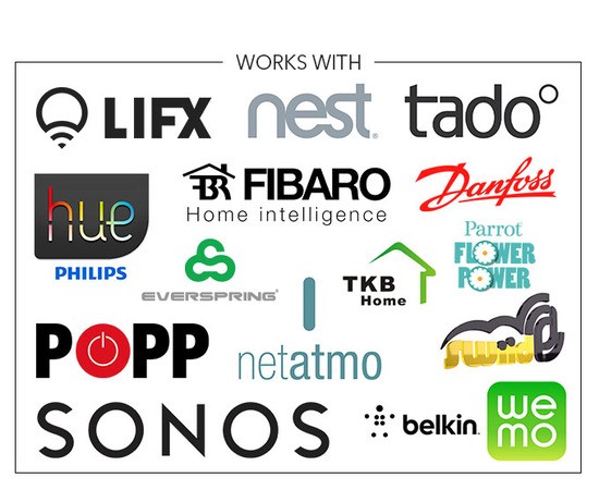 所以整套系统的工作方式也非常简单,首先先将 HUB 和其他智能硬件通过 WiFi 链接到同一个路由器上,或者用蓝牙的方式进行直接链接。然后在手机链接到本地路由或者采用远程到服务器的方式对 HUB 发出指令,然后 HUB 再对智能硬件进行管控。