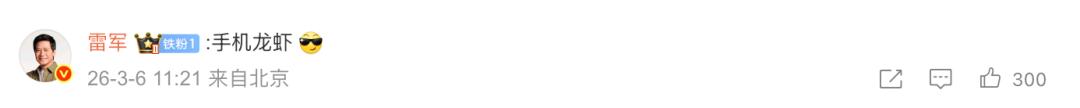 在这条微博下方的评论区,雷军称Xiaomi miclaw为“手机龙虾”。