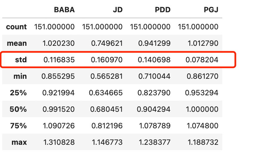 我们也可以发现阿里和拼多多的标准差正在向指数基金靠拢(理论上指数基金由于分散了风险,波动性要小很多),值得注意的是同期京东这一数值仍然偏大。