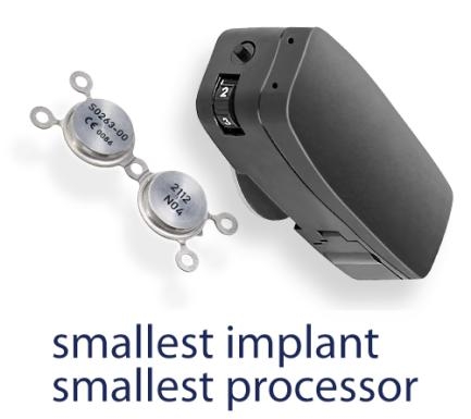 这是Sophono骨锚式助听器,与BAHA不同是,皮肤无需裸露钉子或别的东西,植入体全植入,处理器和植入体之间通过“跨皮通讯”的方式。