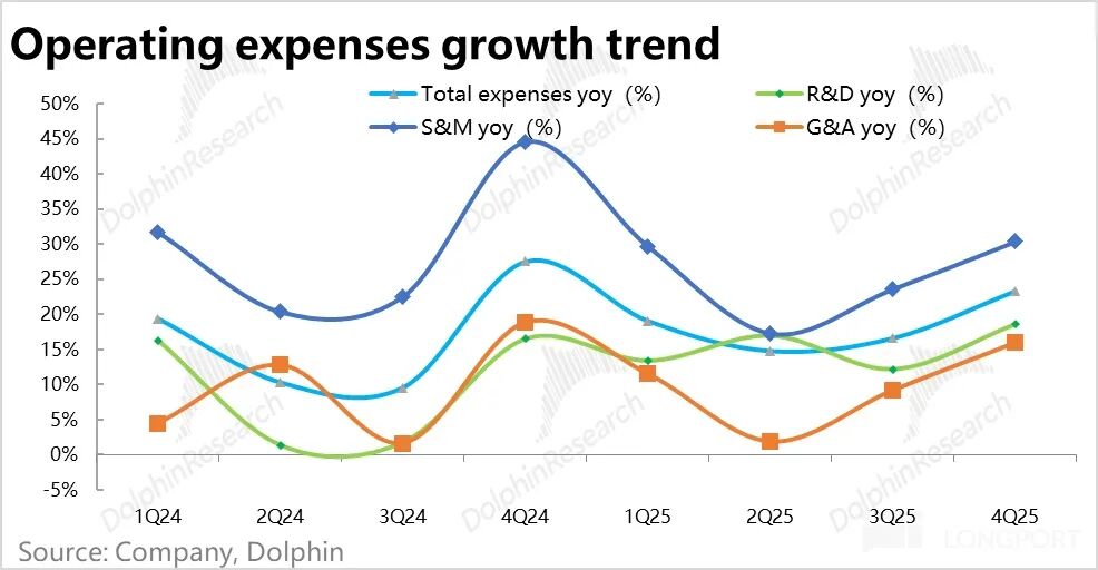 而研发费用和管理费用的增长同样较上季有所提升,也达到 16%~18% 左右,可见公司的费用投入有全面扩张期的势头。