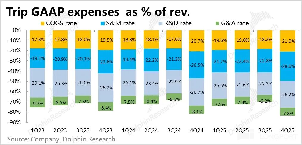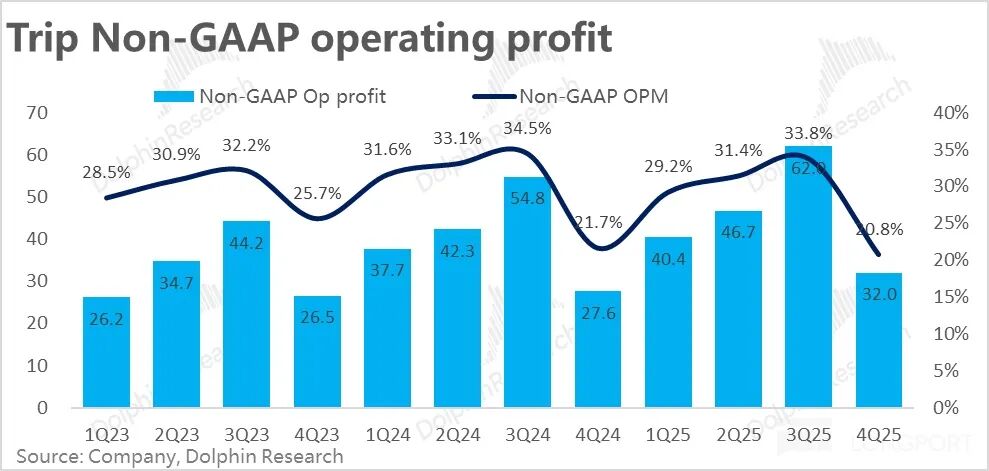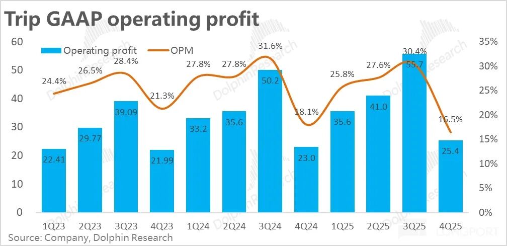 同时利润上,Trip.com 的亏损率到 25 年下半年已缩窄到低双位数%,后续会随着业务体量增长继续自然收窄,扭亏为盈可期(但无明确时间表)。