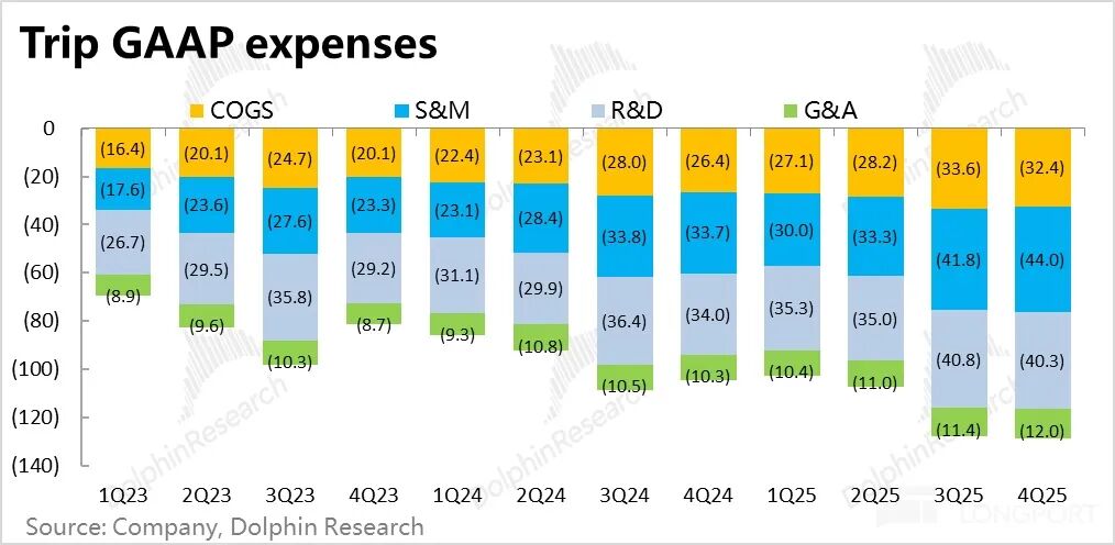 费用上,本季携程总经营费用支出同比增长显著拉高到 23%,较上季明显提速,且比收入增长更快。