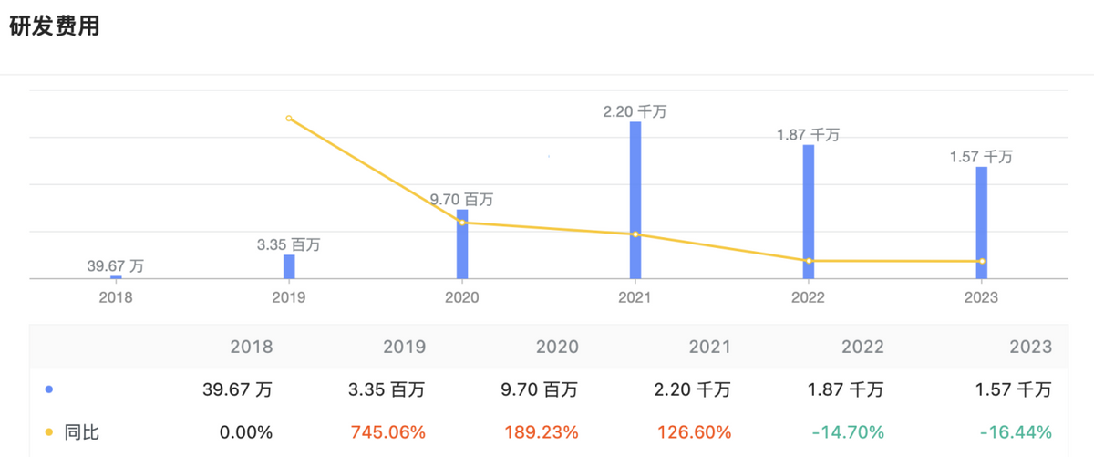 一方面,目前其研发费用不升反降,且仍不足营销开支的“零头”。最新财报数据显示,截至2023年末,逸仙电商的研发费用仅为0.16亿美元,同比下降16.44%,研发费用率为3.34%;而同期的销售费用虽然较2022年有所压降,同比下降15.37%至4.15亿美元,但所占总营收的比重仍高达86.64%。