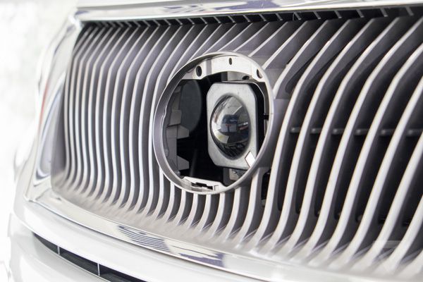 这辆车的前面并没有巨大的雷克萨斯logo,而是一个雷达部件,用于检测其正面的情况,以及行驶速度。它会和主系统进行连接,并控制汽车的加速和减速。