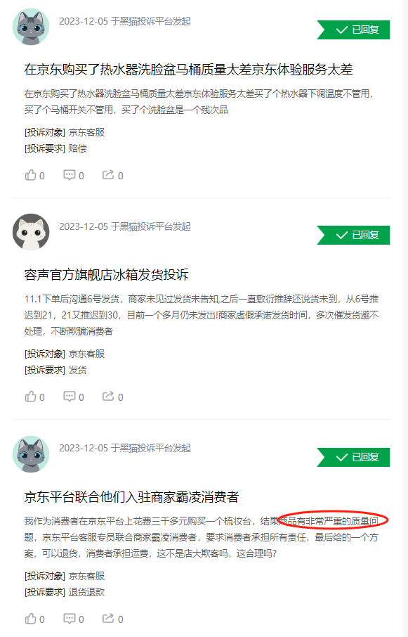 信心雄心溢于言表。反差在于,浏览黑猫投诉、截止12月7日22时,“京东商城”近30天投诉仍高达28874条。其中不乏对服务不到位、质量不满意的质疑声。