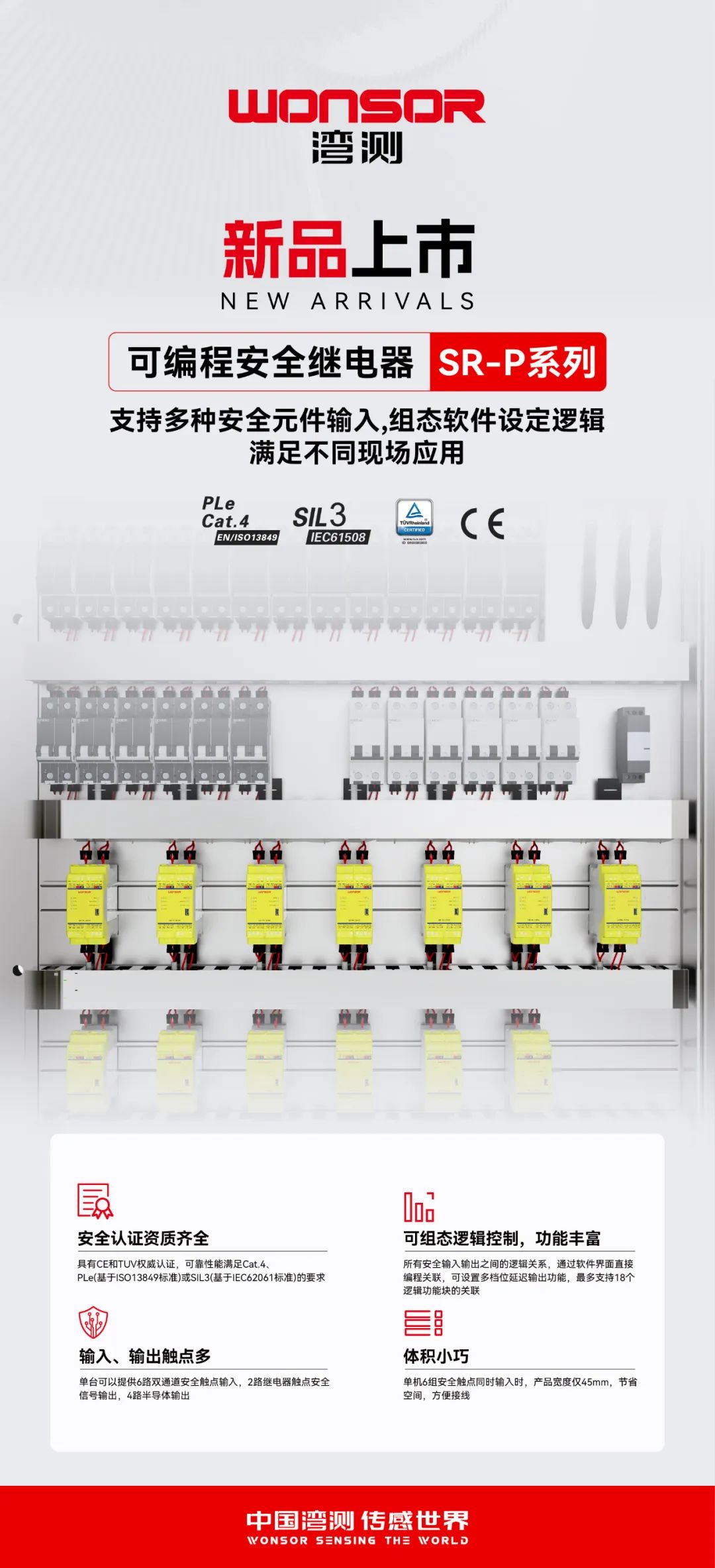 用产品服务市场,为了满足不同用户的需求,湾测推出一款中小型安全应用的可编程安全继电器SR-P系列。