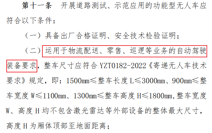 济南则对无人物流车的装备作出了具体规定,并对交通违法与事故处理做出了明确的规定,比如装备就对资质、尺寸、提醒功能、监控功能等做出了具体要求。