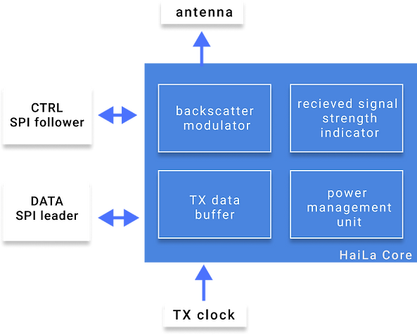 这一产品可以描述为一款1Mbps、采用2.4GHz ISM频段的WiFi反向散射通信前端IP,整个产品中包括一个反向散射模块、一个电源管理单元以及一个专门的Haila核,为WiFi反向散射通信提供赋能,让无源物联网系统真正抛弃电池。