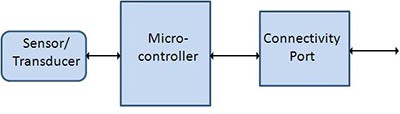 图1:物联网的高级系统框图或M2M节点显示三个主要功能:传感器、处理器和连接接口。