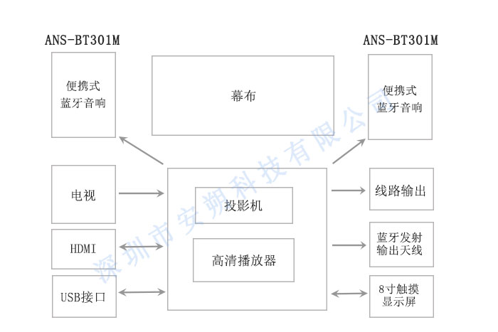便携蓝牙音响使用ANS-BT301M音频蓝牙模块,便可实现TWS、AUX、TF/USB、麦克风等功能