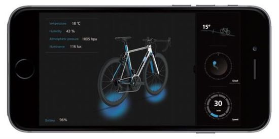 除了3D打印技术,其中的九轴传感器也扮演了重要角色,具体来说,可以测量加速度、角速度、地磁勘探,还能感应温度、湿度、大气压,以及光照感应和GPS定位,而这些信息配合蓝牙和ANT+连接,可以与其他设备相通。在自行车进入隧道时,通过光照感应器可以自动打开车灯;在发生事故时,碰撞感应器也可以自动发送短信给骑行者的朋友。