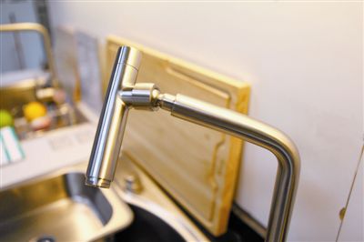 可拔出式喷嘴的厨房水龙头也很受消费者的欢迎。这种龙头比上面提到的厨房花洒龙头要更小巧一些,使用时可以直接拔出隐藏在里面的软管。由于长度可延展,水槽的边边角角它都能冲到。走访市场时,笔者还发现普乐美有一款可以360度旋转的水龙头,这种龙头的水嘴使用独特的球形关节与水龙头的引水管连接,可以360度旋转。