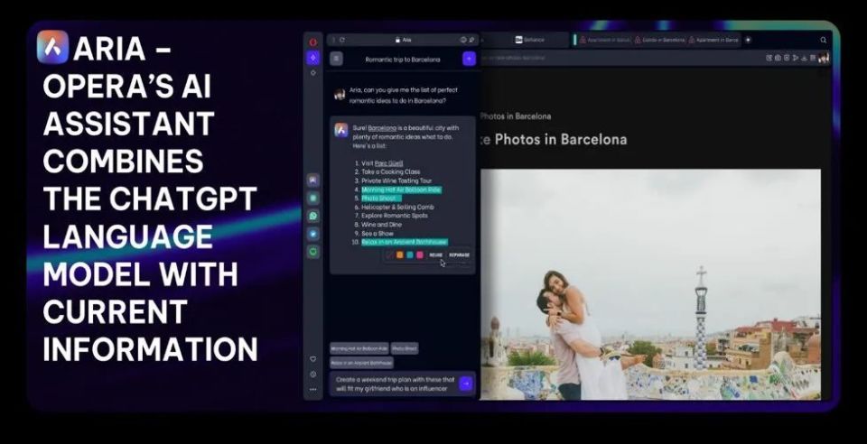 Opera原生AI助手“Aria”展示