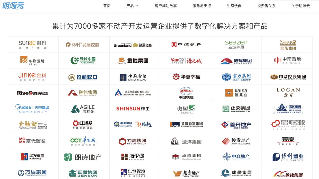 明源云官网上展示的大量地产公司客户