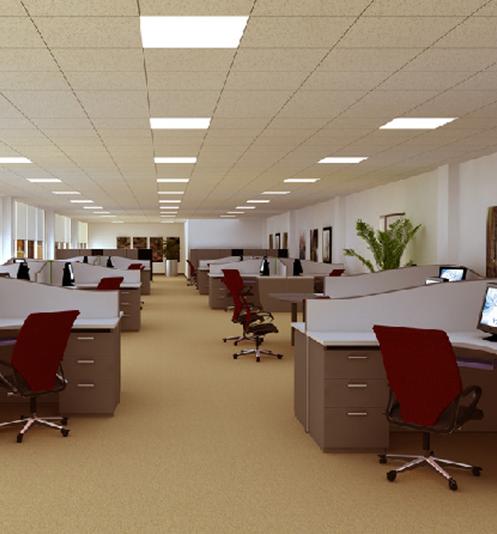 在大楼办公室,配以可调光电子镇流器的日光灯在智能照明控制系统控制下与传统的日光灯照明系统相比具有显著的优点。因为配有传统镇流器的日光灯以100HZ 的频率闪动(电网频率的2 倍),这种频闪使工作人员头脑发胀,眼睛疲劳,降低了工作效率。而可调光电子镇流器则工作在很高的频率(40KHZ-70KHZ),不仅克服了频闪,而且消除了由于使用START 而造成起辉时的亮度不稳定,给员工提供了比精良的房间装饰和高档办公用具更为重要的有利于健康的舒适环境,同时也提高了工作效率,而这一点却给业主带来预想不到的巨大经济回报。