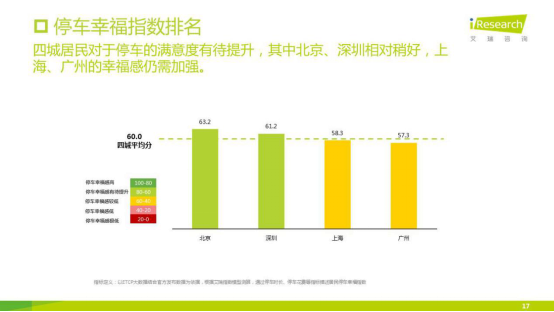 报告主要针对北上广深四个超一线城市展开调研,对比城市静态交通活力指数、停车资源利用指数、停车智慧指数、停车幸福指数这四项指标。