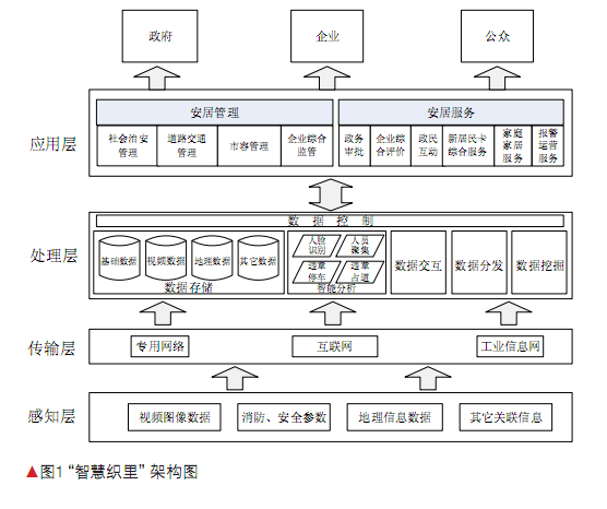 基于上述技术框架,根据湖州“智慧安居”总体规划,结合织里的实际情况,织里镇“智慧安居”试点内容包括“三大感知系统,一张协同传输网,一个数据服务中心,两级指挥中心,二大核心应用(安居管理应用和安居服务应用)”。