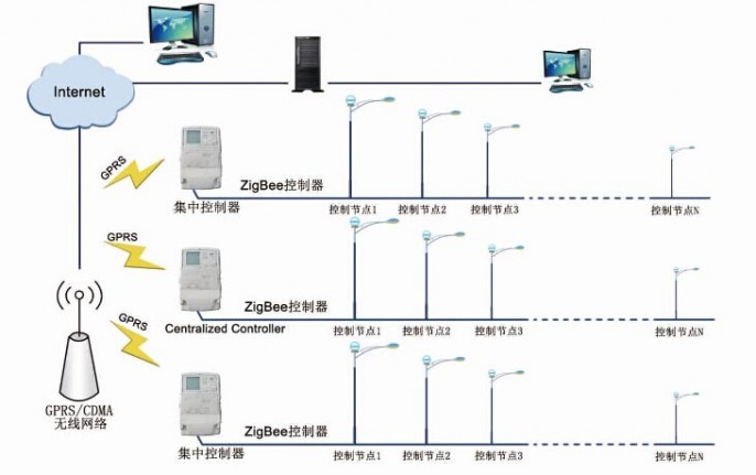 路灯控制器充当了路灯的“眼睛”,与ZigBee的结合,使得路灯管理人员在办公室内就可以实现对校区所有灯具的智能化控制,包含单灯控制、群组控制、调光等,同时监测每盏灯电压、电流、功率;集成了ZigBee与GPRS的集中控制器,则是整套系统的“中枢神经”,在近处组件ZigBee网络,管理整个片区的路灯控制器,在远处使用GPRS可以实现远程操控,收集路灯控制器的数据,上报给中心服务器,并且执行下达中心服务器的控制命令;节能监控平台则负责管理所有的路灯控制器,下达相关的操作命令,可以通过PC、网页、智能手机、平板电脑等对整个照明系统进行管理,系统内置多种策略,实现不同的管理方式,用户也可自定义策略,让管理更智能化、人性化。