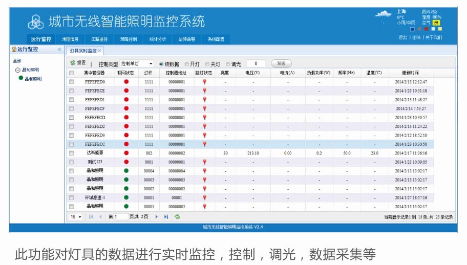 2015年底,郑州某大学新校区校园路灯的智能改造中,针对原有的灯控数据采集不良、灯控地址遗漏、灯控未通电未上数据灯问题,顺舟科技接入了自主研发的城市照明系统。