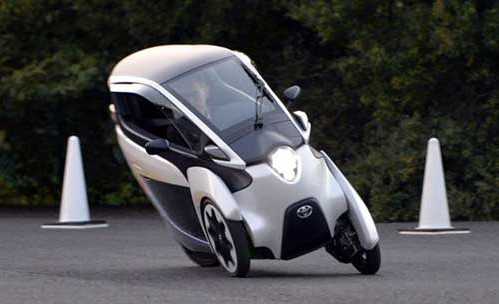 丰田的i-ROAD三轮私人电动车采用主动车身侧向技术,车轮可以上下移动,计算出转弯时的最佳位置,让驾驶者轻松应对拥堵的交通。行驶过程中,i-ROAD可以像摩托一样倾斜车身。