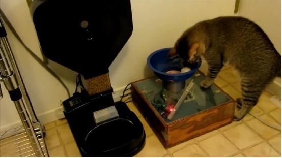 懒惰是许多家猫的一大“缺点”,为了让自己的爱宠多运动,猫奴们也是想尽了办法。最近,YouTube用户Ben Millam就改装了自家的宠物喂食器,使其只有在被投入装备了RDIF芯片的球时才会提供猫粮。