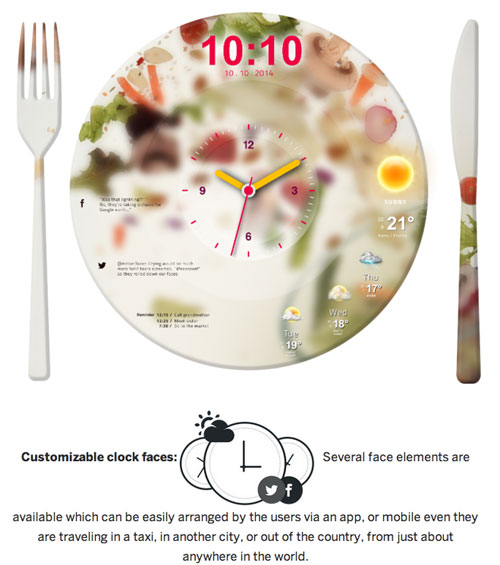Coolest Clock 是按照投影挂钟的外形打造的,尺寸为 34.0 毫米 x 25.1 毫米 x 6.8 毫米,LED 灯寿命达到了 10000 小时。其设计初衷就是为了赋予时钟显示时间以外的内容,因而具有多功能和智能性。它的最大的特点是允许用户在查看时间的同时通过丰富多彩且极富吸引力的 “智能钟面”了解各类推送信息。这样一款精致而时尚的设备,只要安装在墙面并与电源插座连接上,就可以使用了。Coolest Clock 通过智能手机 App 进行控制,用户注册并登陆 App 就可以完成智能钟面的外观和推送信息的来源的设置。用户不仅可以改变投影的颜色和外观,还可以选择显示手机端的信息还是网页端的信息。最终 Coolest Clock 呈现出的效果,完全取决于用户的美化。