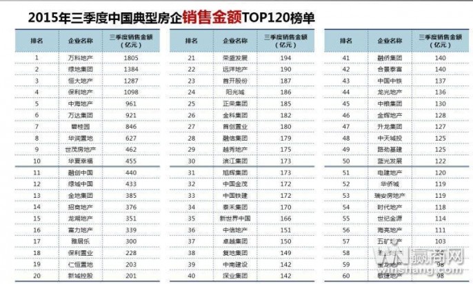 随后,陈啸天展示了亿翰中国旗下专门的房地产研究机构——亿翰智库公布的《2015前三季度中国房地产企业销售业绩TOP120排行榜》,并对其做了详细解读。