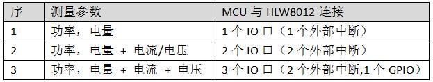 ·CF脚输出脉冲频率大小即表示有功功率值,CF输出脉冲个数表示电量。CF1输出脉冲频率表示电压有效值/电流有效值。MCU与HLW8012的接口如下表: