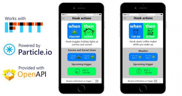 HOOK 的 WiFi 芯片使用的是在国外比较流行的 Particle.io 的方案,所以 HOOK 也没打算自己申请 IFTTT 的 API,而是直接使用了 Particle.io 的 IFTTT 服务作为运算接口。在使用之前,HOOK 需要在 Particle.io 上申请和绑定账号。