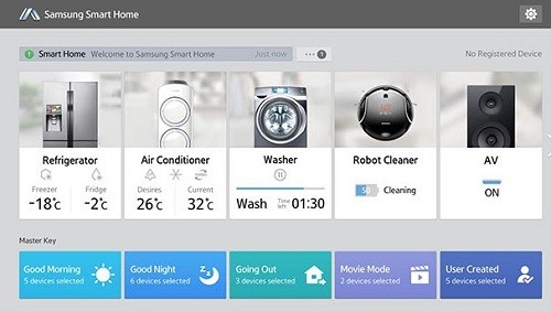 消费者在家中可以将各种设备通过网络相连接,然后可以很容易的通过智能手机、平板电脑、智能手表甚至是智能电视来控制家中的智能家居系统。三星的Smart Home智能家居系统分为多个发展阶段,在发展初期,该系统的主要功能是设备控制、家庭视窗及智能售后客服等。