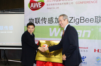 2015年3月11日,中国家电博览会(AWE)在上海新国际博览中心隆重开幕,而当日最受关注的莫过于中国智能家居企业物联传感以“推动者”身份加入ZigBee联盟,成为该联盟继飞利浦、罗格朗、施耐德等公司后的全球第12位董事会成员和亚洲地区唯一的董事会成员。ZigBee联盟主席兼首席执行官TobinRichardson代表董事会揭牌,表示欢迎物联的加入。这预示着中国智能家居企业得到国际组织的认可,并且在国际上拥有了一定的话语权。