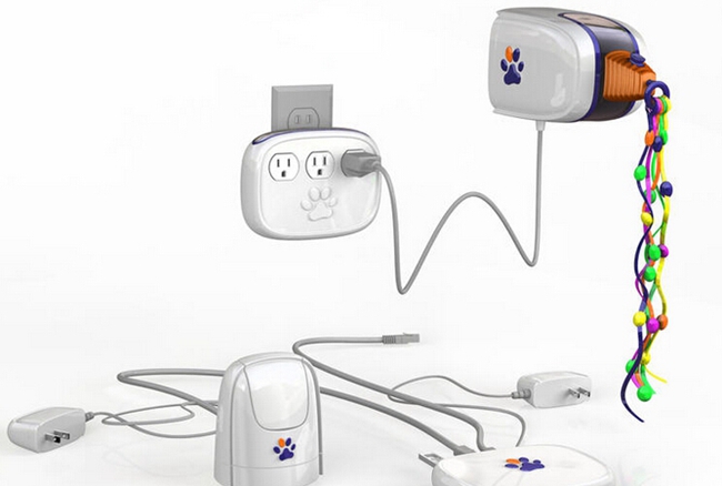 而现在推出家庭版的iPet Companion,其包括一个智能墙式转接器(有3个接口,你还可以插入饮水机或者喂食机等其他设备)、一个摄像头、一个控制箱和一个让玩具活蹦乱跳的电动机。当家中有小猫猫的时候,不管你在哪里,你都可以和小猫猫互动。只要登录网页界面,控制摄像头和玩具,你就可以肆意的逗弄你最爱的小喵喵了。当然其你的家人和朋友也可以使用,好东西就是拿来分享的嘛。
