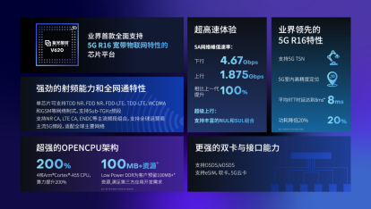 产品名称:业界首款全面支持5G工业宽带物联网特性的芯片平台——V620