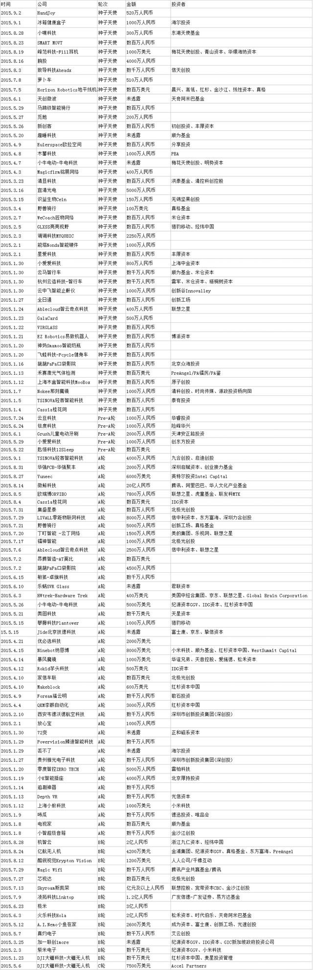 附图:2015年智能硬件领域融资项目汇总